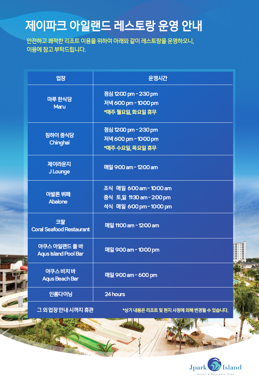 세부 막탄 공항 내 제이파크 아일랜드 안내부스 운영