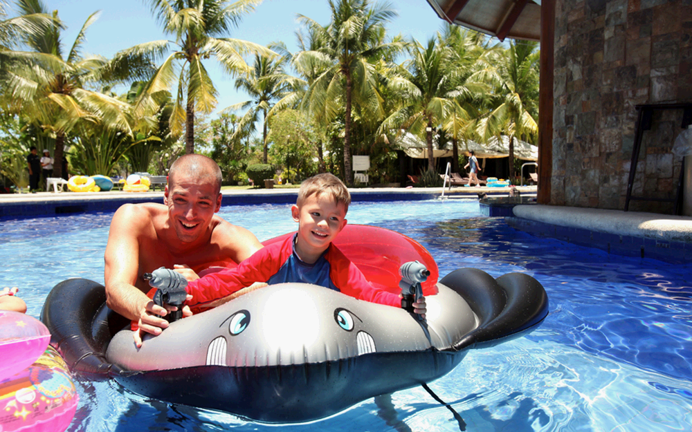 수영장 중앙에 아쿠아 바(aqua bar)가 있으며, 낭만적인 곡선형 풀입니다.